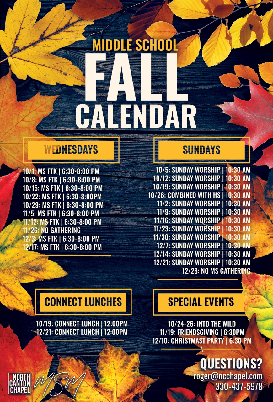 Doors open at 6:30pm for students to come and hangout. Middle School (Grades 6-8) meet in the Family life Center.